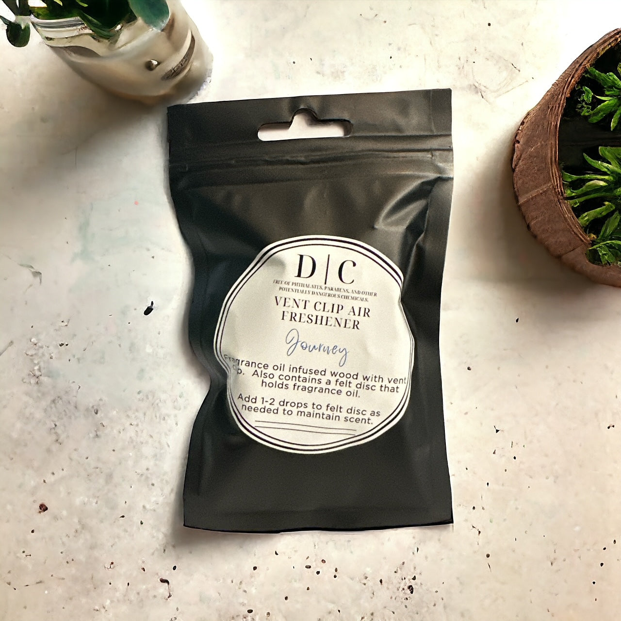 Select either the man or the boy, or opt for both! The wood comes infused with fragrance, and the felt disc attached to the back side of the vent clip also carries the scent. You can adjust the vent clip to align with the direction of your vent fins.