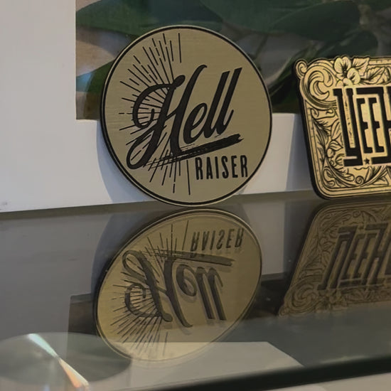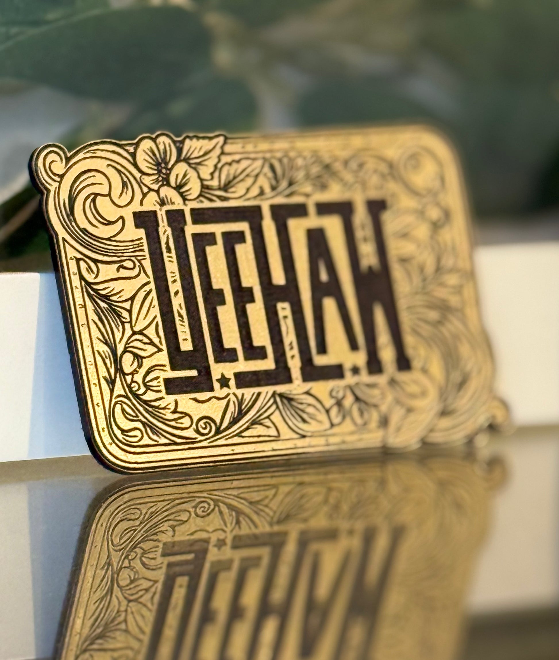 Gold Engraved YeeHaw Buckle Hat Patch